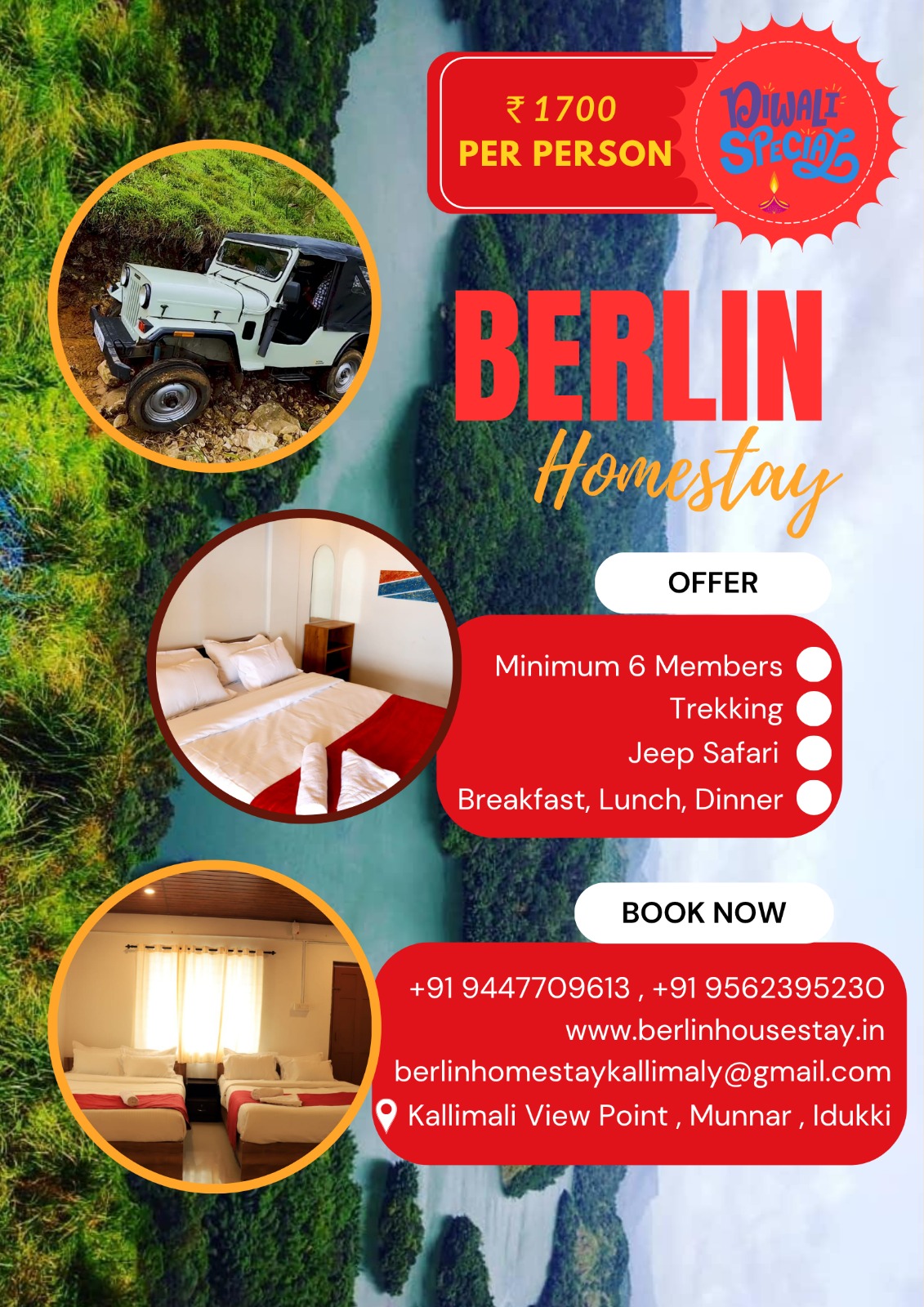 Berlin Homestay offers a peaceful retreat surrounded by nature’s beauty. With comfortable rooms, stunning views, and warm hospitality, we provide the perfect place to relax and unwind. Book your stay today and experience the charm of Kerala at Berlin Homestay—your home away from home.